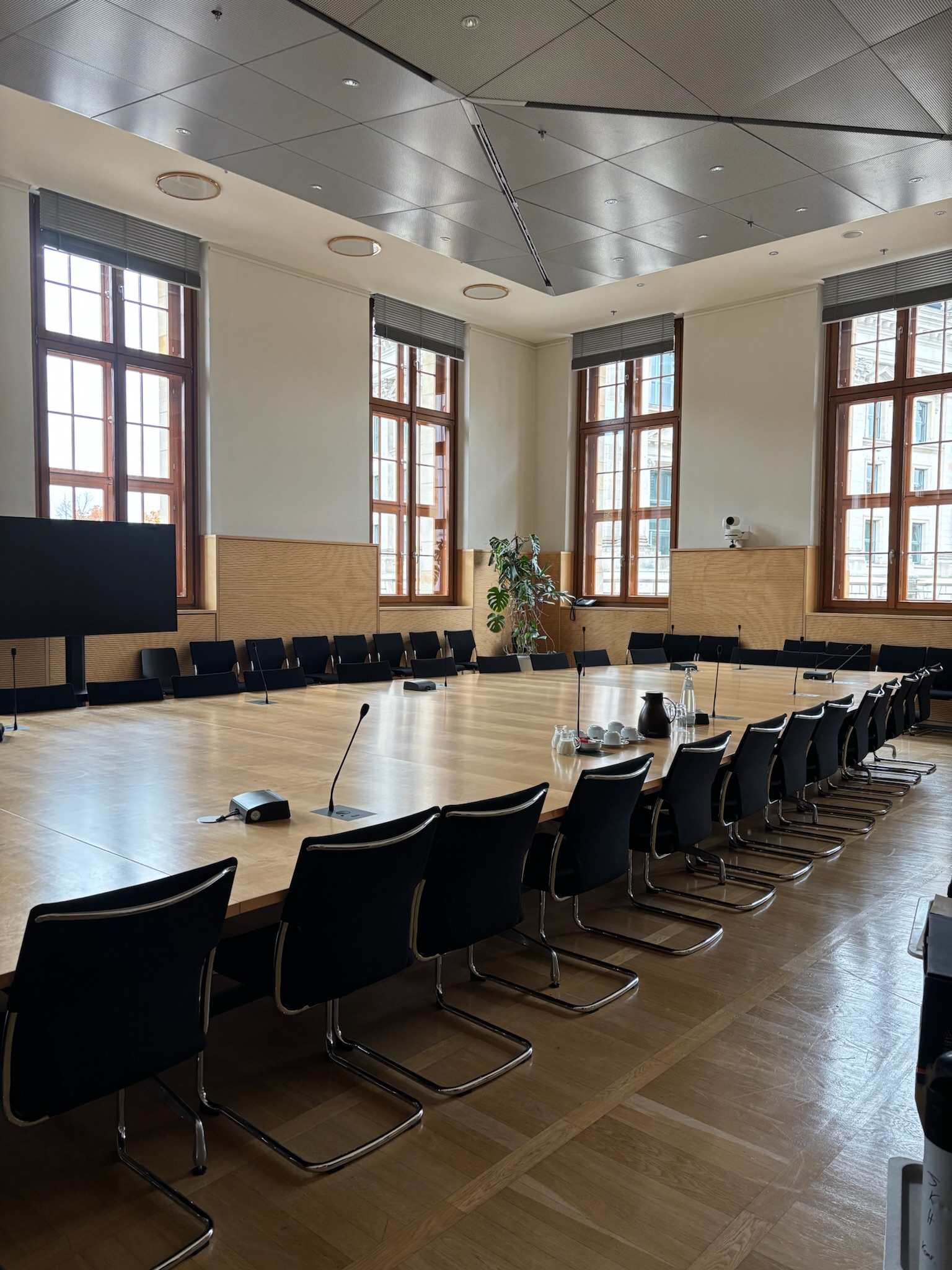 Direkt am nächsten Morgen sollten wir herausfinden, wie die AG-Absprachen in einer Ausschusssitzung ihre Anwendung finden. Diesmal nahmen wir auf den oberen Zuschauerrängen des Raumes Platz; hier gilt ein strenges Handyverbot. In der Ausschusssitzung sind Abgeordnete von verschiedenen Parteien vertreten. Außerdem gibt es eine feste Tagesordnung mit vorher festgelegten Redezeiten. Zu den einzelnen Tagespunkten wurden in diesem Fall auch Gäste von außerhalb eingeladen. Hierfür waren Diene Keita (Exekutivdirektorin des Bevölkerungsfonds der Vereinten Nationen, UNFPA) zu Besuch, um über die aktuelle Situation des United Nations Fund for Population Activities zu berichten. Die andere Gruppe bestand aus Vertretern der Impfallianz Gavi, welche primär von Dr. Sania Nishtar, der Vorstandsvorsitzenden, vertreten wurde. Begleitet wurde sie auch von Peter Sands dem Exekutivdirektor Global Fonds zur Bekämpfung von AIDS, Tuberkulose und Malaria (kurz: GFATM). Beide berichteten über ihre Arbeit angesichts der aktuellen weltpolitischen Lage. Die Arbeit der einzelnen Fonds und Organisationen wurde jeweils in einem Redebeitrag kurz vorgestellt, bevor es in eine zeitlich begrenzte Frage-Antwort-Runde ging. Kernthemen hierbei waren, die Verwendung von finanziellen Mitteln, welche durch die Bundesregierung bereitgestellt werden und welche Errungenschaften und Leistungen mit ihnen in der Vergangenheit bereits erreicht werden konnten. Hier stellten wir zum ersten Mal fest, wie essenziell das Beherrschen der englischen Sprache ist, denn die Vertreter sprachen primär Englisch, aber auch Französisch. Hierfür stehen in der Ausschusssitzung an sich natürlich Dolmetscher bereit. Jedoch ist für viele Gespräche trotzdem das sichere Beherrschen der englischen Sprache unerlässlich.