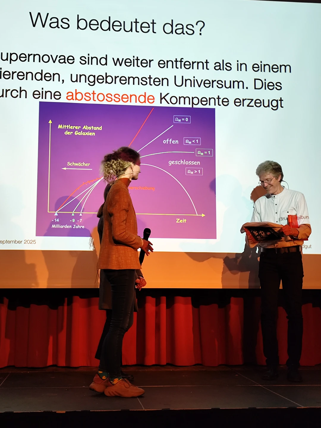 Kosmologie versucht die Vergangenheit und die Zukunft des Universums mit den bekannten physikalischen Gesetzen zu erklären. Es ist nicht verwunderlich, dass sich besserem physikalischem Verständnis unser Weltbild immer wieder verändert hat. In den letzten 100 Jahre hat sich ein Modell entwickelt, das auf wenigen einfachen Annahmen beruht und die meisten Beobachtungen erklären kann. In diesem Modell hat das Universum einen zeitlichen Anfang und seine Entwicklung wird von seinem Inhalt bestimmt. Ich werde den Stand der heutigen Kosmologie und der entscheidenden Beobachtungen beschreiben.